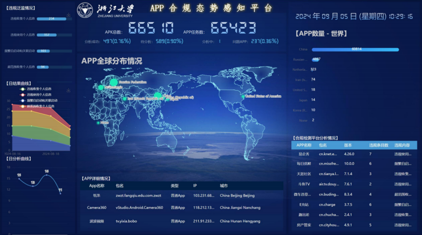 该平台遵循11个政府部门制定的22项法律法规,细化为215项合规检测标准。我们采用静态分析、动态分析、人工智能模型以及大型语言模型等技术手段,对应用程序的源代码、调用栈、用户界面组件以及隐私政策文本进行全面分析,生成详尽的检测报告。